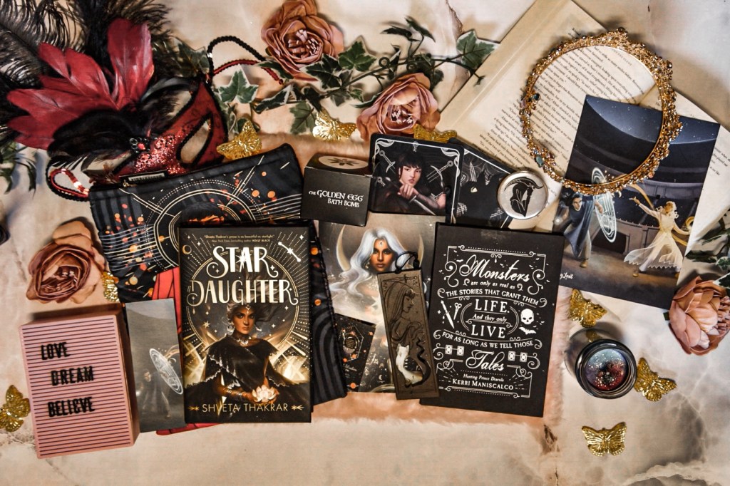 - Star Daughter by Shveta Thakrar is signed by the author, has shimmery sprayed edges and art on the reverse of the dust jacket by bxromance.